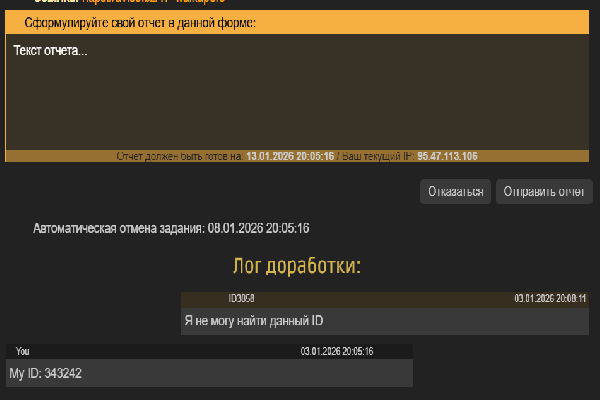 Пишем в данную форму свой отчет и нажимаем кнопку отправить отчет, если же, вы не хотите выполнять данное задание нажмите кнопку "ОТКАЗАТЬСЯ". После того как Вы нажали по кнопке "Отправить отчет" Вы можете смотреть его на странице ЗАДАНИЯ по ссылке "Готовые отчеты".